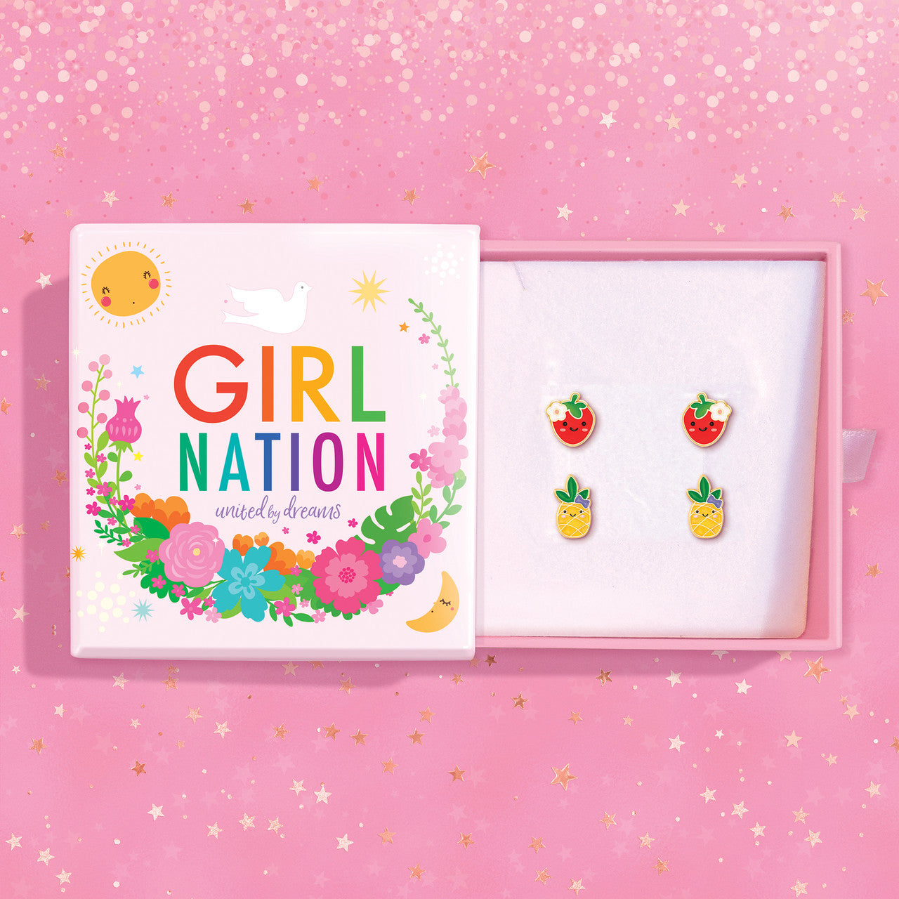 The perfect gift for little cuties! Whether you are looking for the ultimate summer vacation accessory, a fun beach-themed treat, or a special daily gift for a little sweetie, the Dynamic Duo Gift Set is a fantastic choice. This themed set includes two pairs of our bestselling Cutie Stud Earrings, beautifully presented in an adorable Girl Nation Gift Box—ready for any tropical celebration.