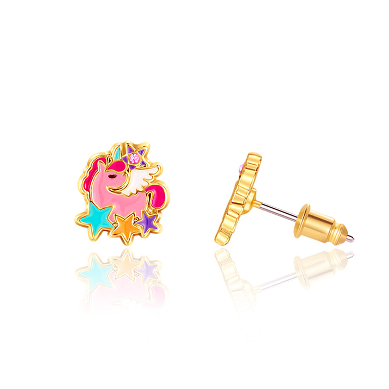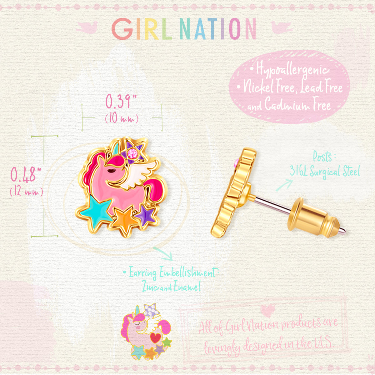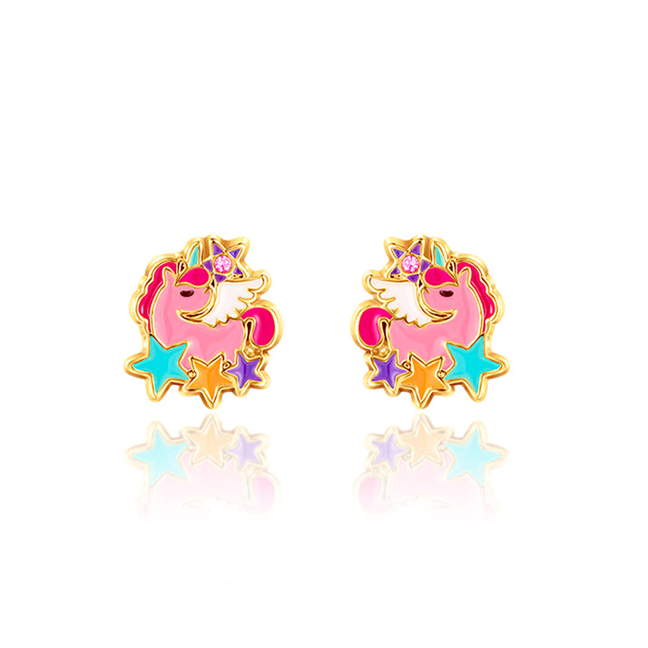 This magical unicorn stud, surrounded by colorful stars, brings a delightful pop of fantasy to any outfit. The playful mix of pink, blue, and purple makes it perfect for birthdays, school events, and any day your child wants a little sparkle and charm.