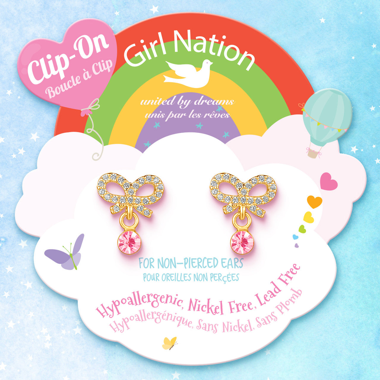 The dainty crystal bow paired with a soft pink CZ drop creates a sweet, elegant look kids love, while still being gentle enough for all-day wear.