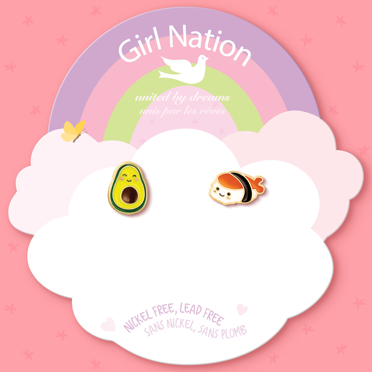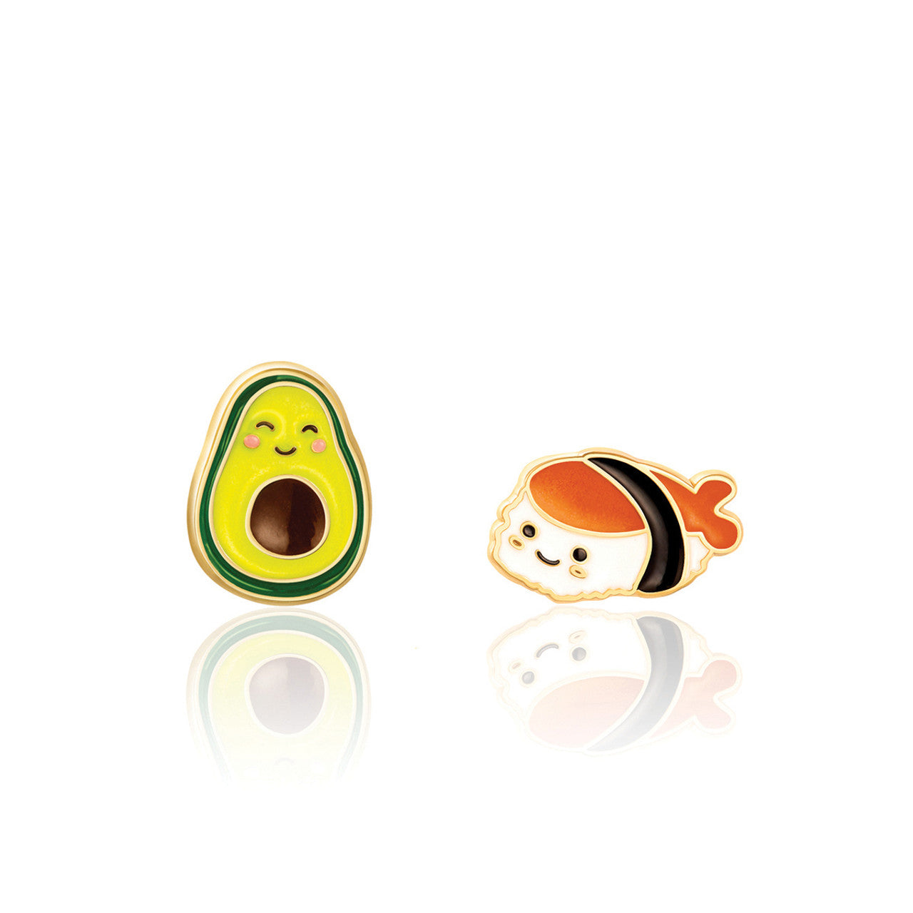 Playful, quirky, and full of charm—the Guac and Roll Cutie Enamel Studs pair a smiling avocado with an adorable sushi friend. Their fun colors and expressive designs make this mismatched duo a standout accessory for kids who love bold and creative style.