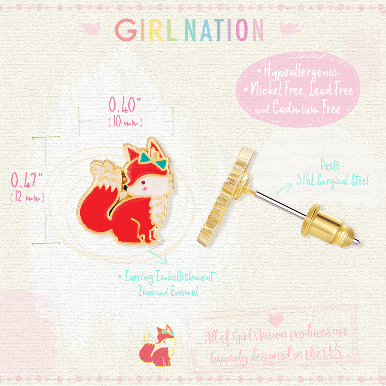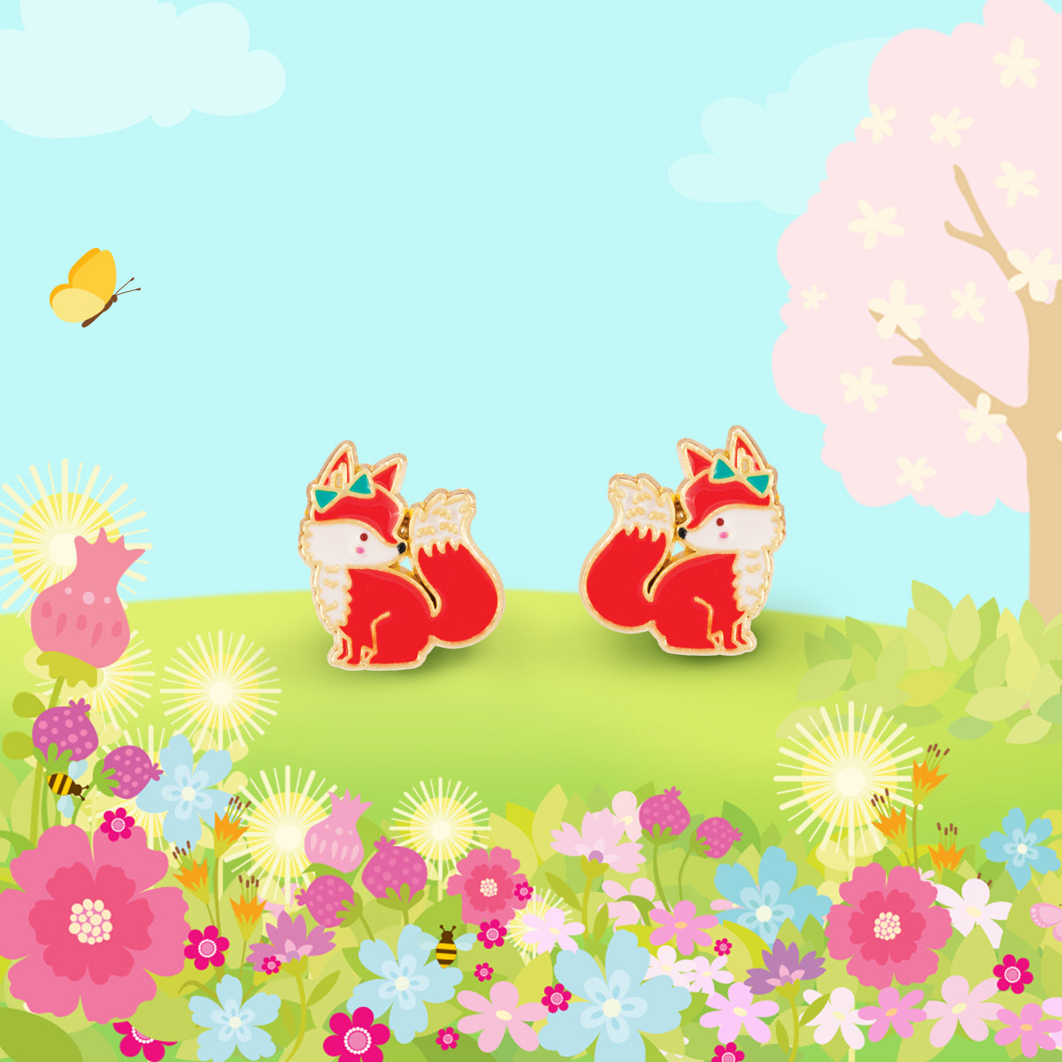 Easter gift fancy fox earrings for girls. Hypoallergenic kids earrings and perfect Easter basket stuffer by Girl Nation Canada.