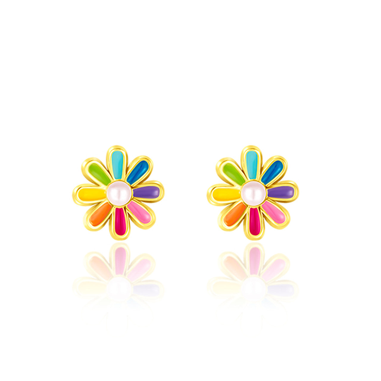 Bring a burst of color to her day with the Rainbow Daisy earrings. These cheerful studs feature a vibrant daisy design with petals in every color of the rainbow, making them a perfect accessory for any bright and happy outfit. Designed specifically for children, these earrings provide a safe and comfortable experience for all-day wear.