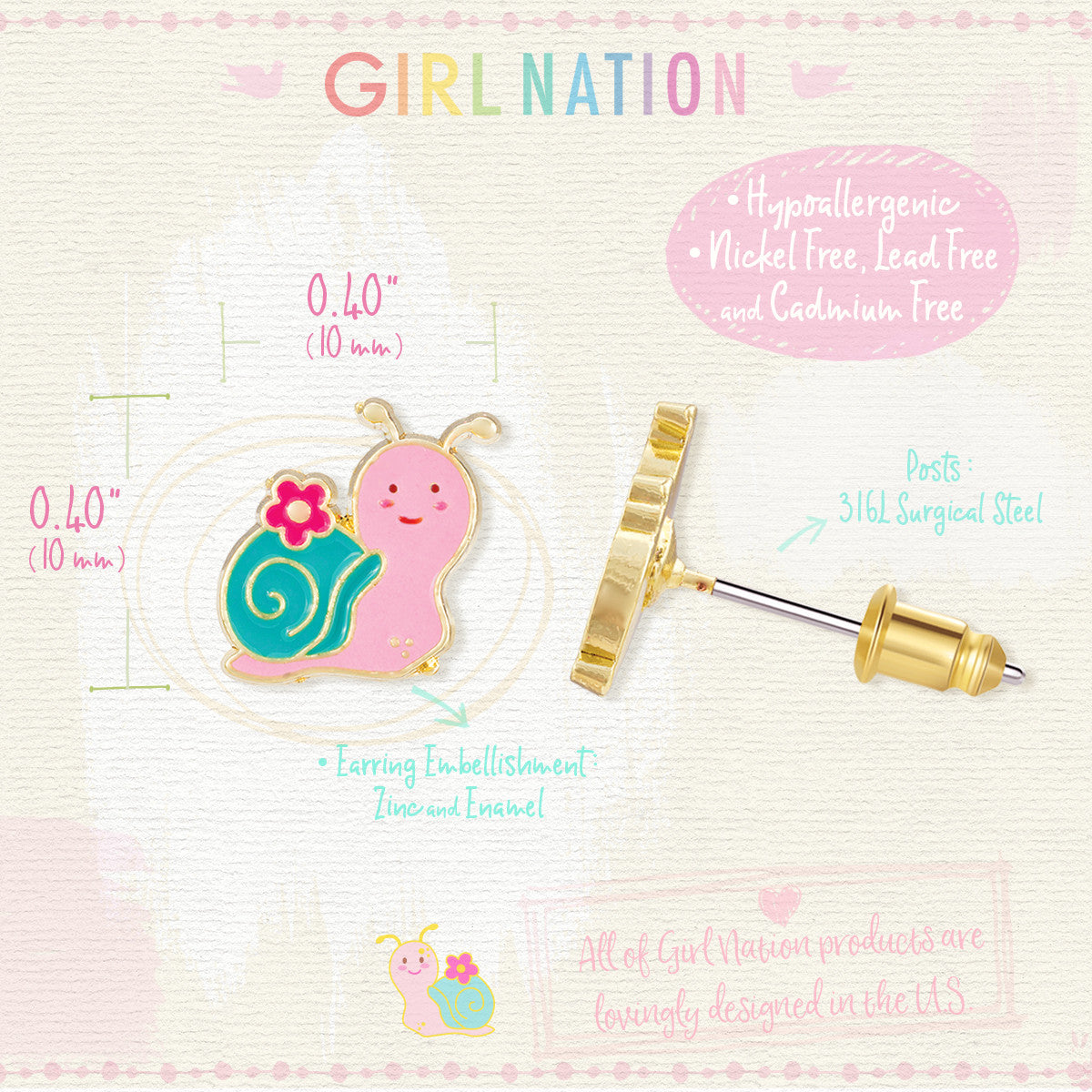 Easter gift snuggly snail earrings for girls. Hypoallergenic kids earrings and perfect Easter basket stuffer by Girl Nation Canada.
