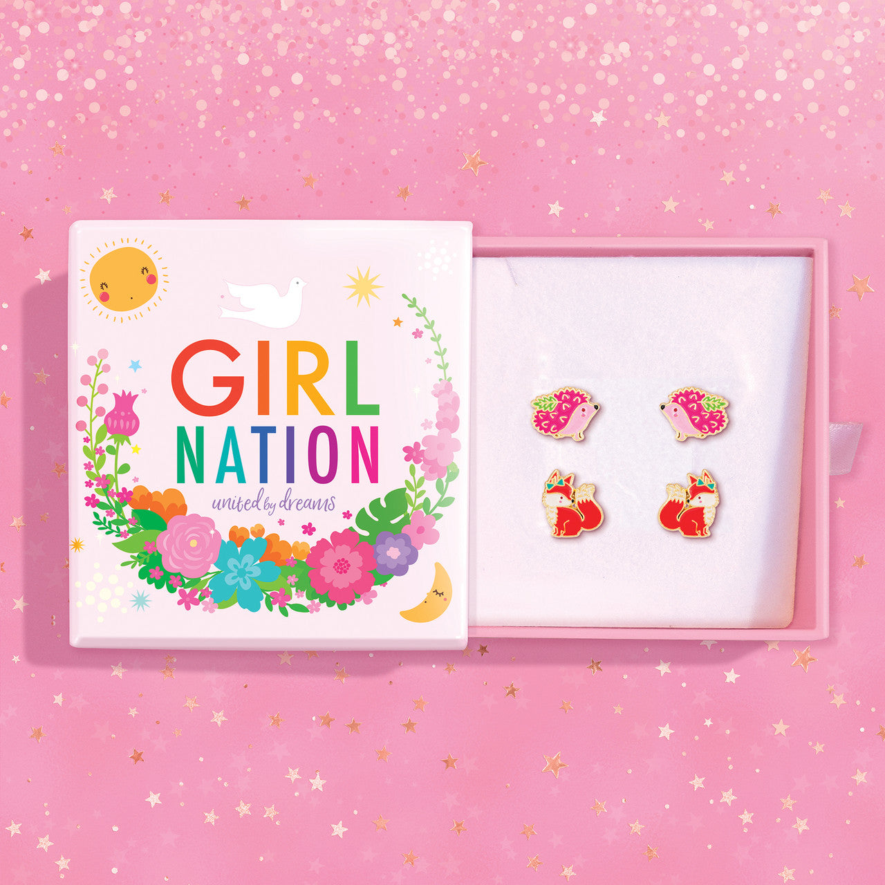 Whether you’re looking for a delightful Easter basket stuffer, a sweet birthday surprise, or a charming 'just because' gift, the Dynamic Duo Gift Set is a wonderful choice. This themed set includes two pairs of our bestselling Cutie Stud Earrings, beautifully presented in an adorable Girl Nation Gift Box—ready to bring the magic of the forest to her day.