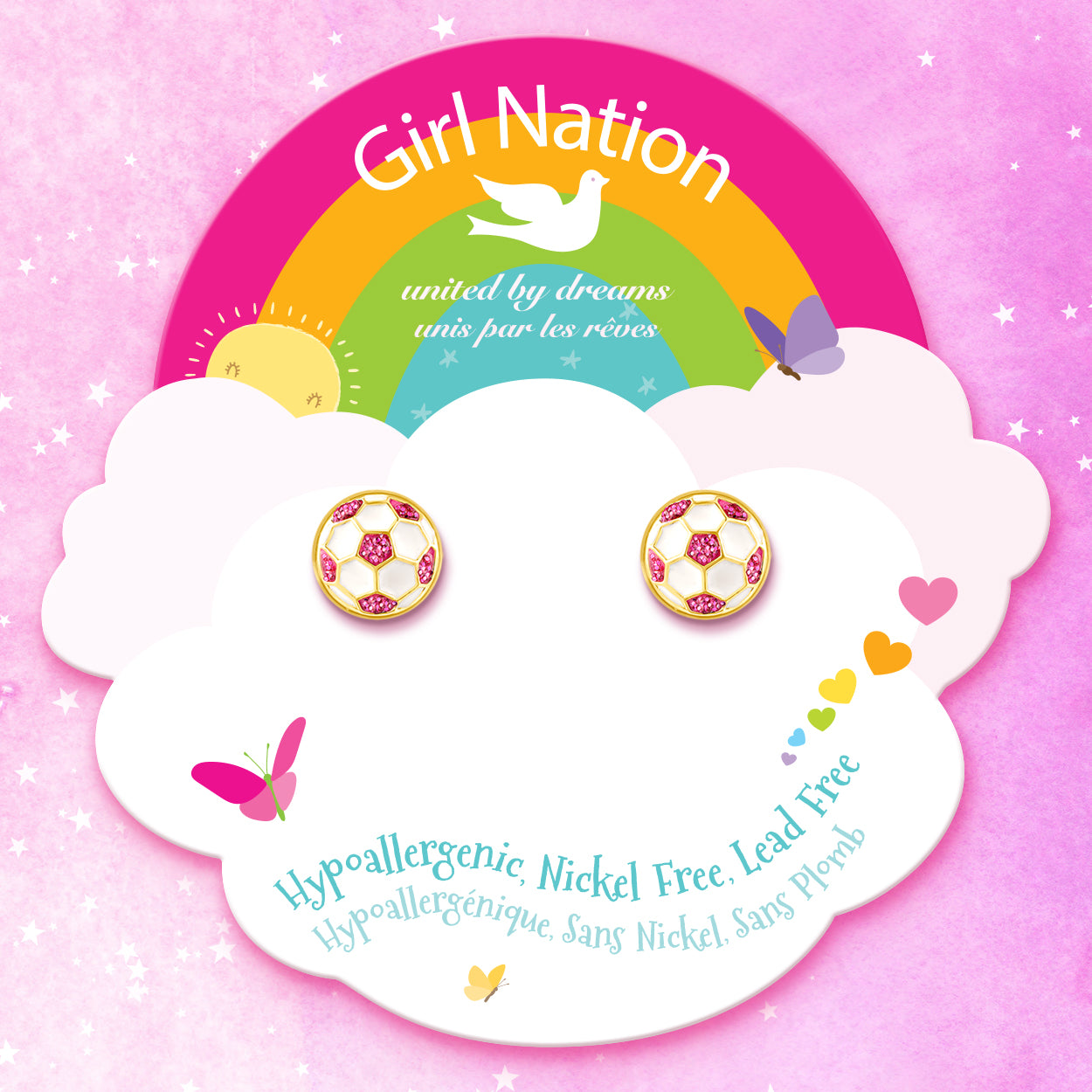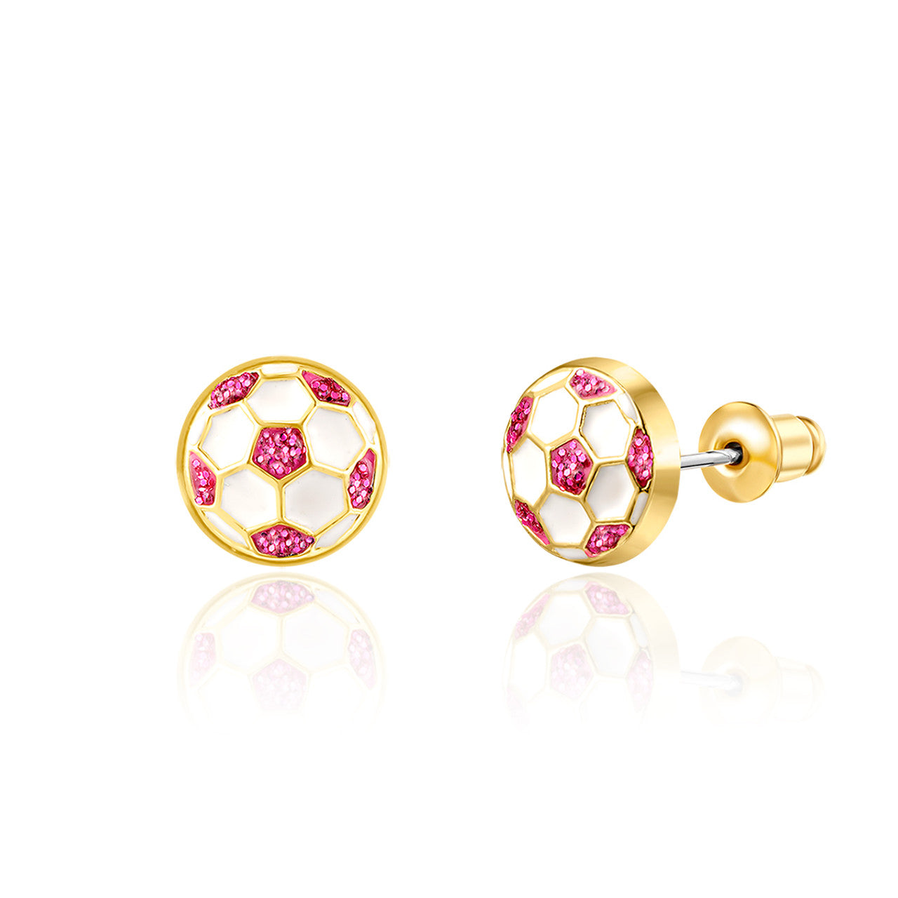 The Soccer Ball Stud Earrings feature a classic soccer-ball design accented with sparkling pink crystals, blending sporty energy with a fun, girly twist. Perfect for kids who love soccer or enjoy an active, confident style. They stand out on their own and look great paired with simple studs for a unique, expressive look—especially popular among kids who want something “different.”