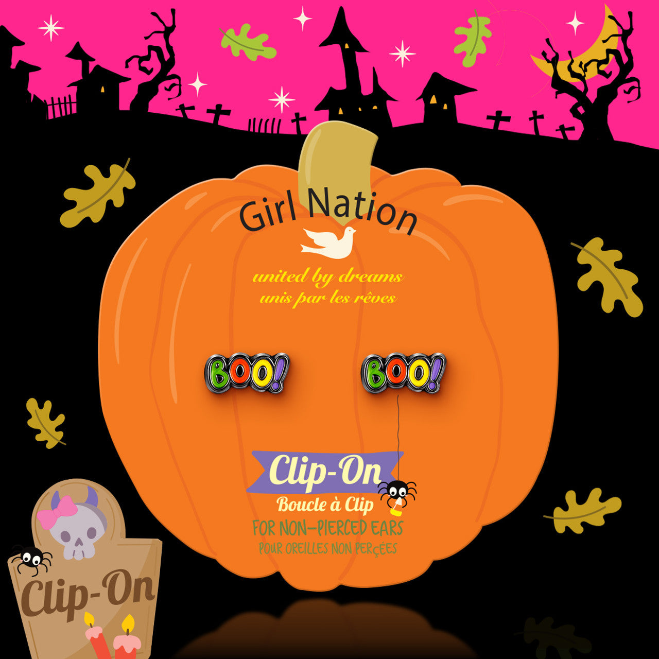 Girl Nation’s lightweight and gentle clip ensures all-day comfort, even for sensitive little ears. The high-quality enamel finish keeps the colors vibrant, while child-safe materials give parents peace of mind. A cheerful, easy-to-wear accessory that brings excitement to every Halloween celebration.