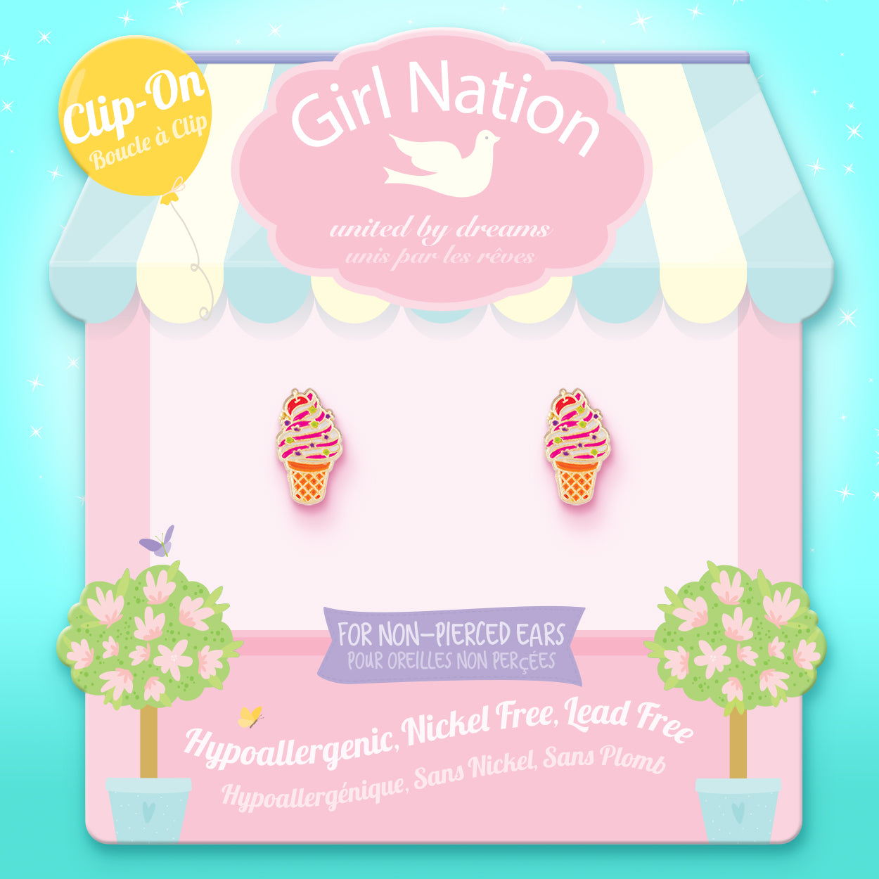 The Soft Serve Swirl Cutie Clip-on Earrings bring the joy of a real ice-cream treat to any outfit. With bright sprinkles and a fun cone shape, these earrings instantly add color and charm to your child’s look.