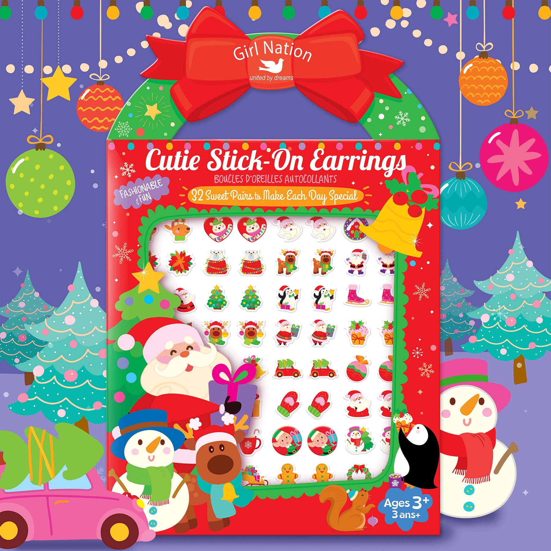 Celebrate the season every day with the Holly Jolly Stick-On Earrings set. Featuring 32 festive pairs—Santa, snowmen, reindeer, holiday treats, and more—kids can enjoy holiday fun with no pierced ears needed. Gentle, lightweight, and easy to apply for daily dress-up.
