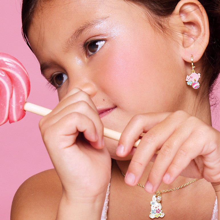 Easter gift bunny and blooms necklace for girls. Hypoallergenic kids jewelry and perfect Easter basket stuffer by Girl Nation Canada.
