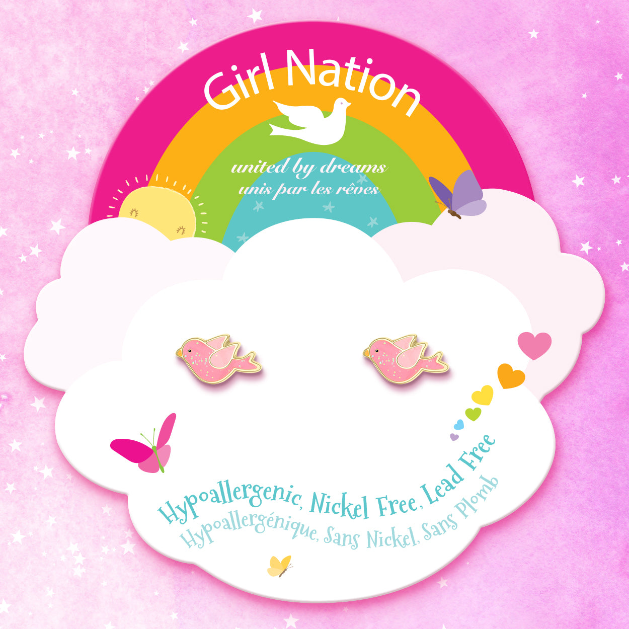 Easter gift twinkle bird earrings for girls. Hypoallergenic kids earrings and perfect Easter basket stuffer by Girl Nation Canada.
