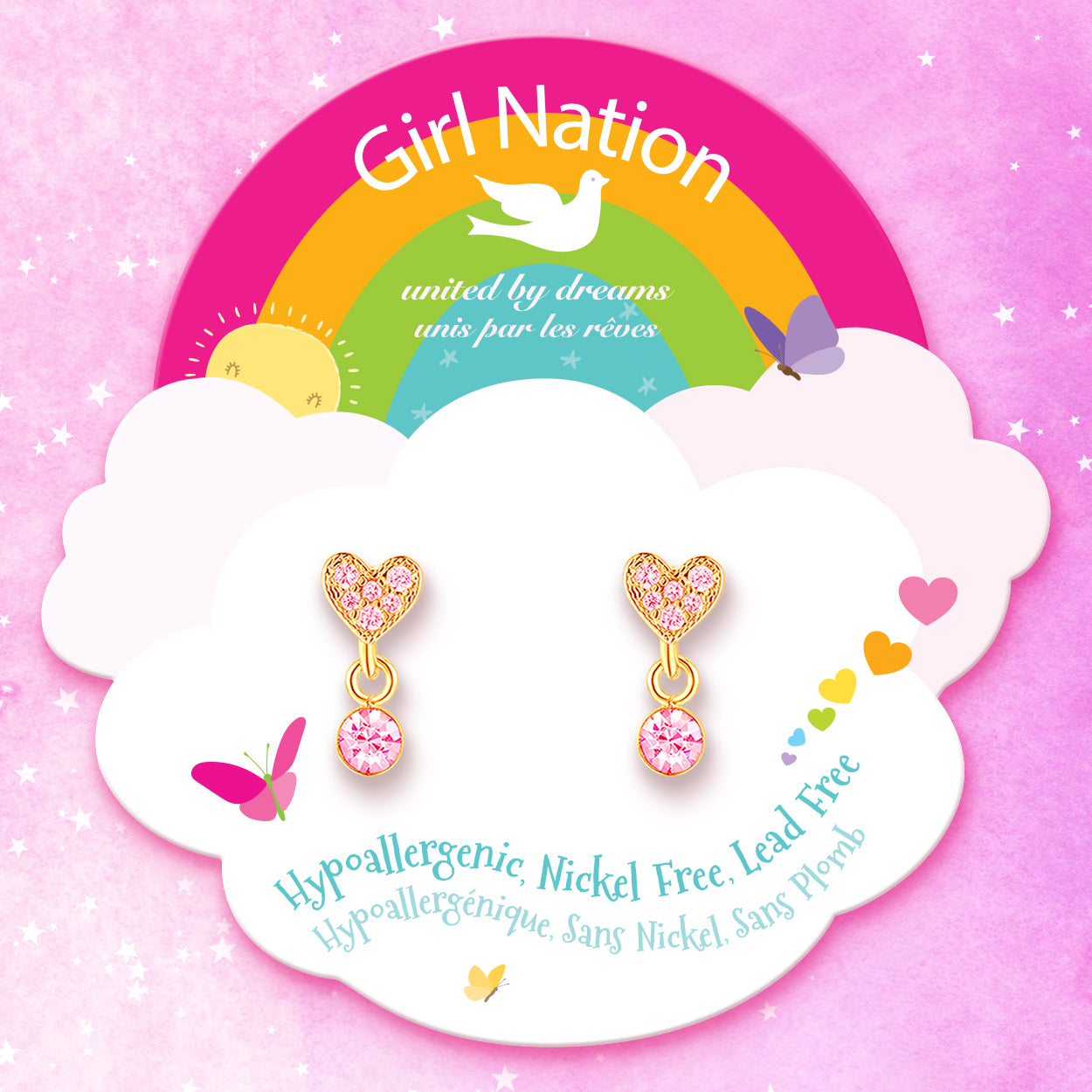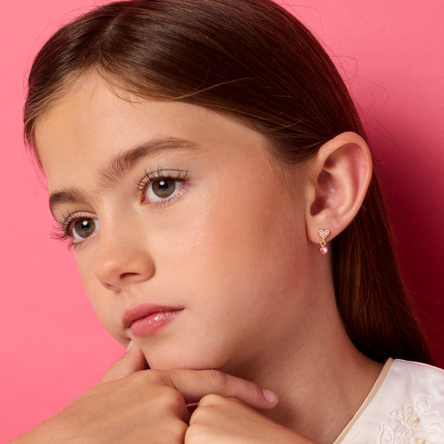 Little Luxe Drop Earrings | Heart with Pink Cubic Zirconia
