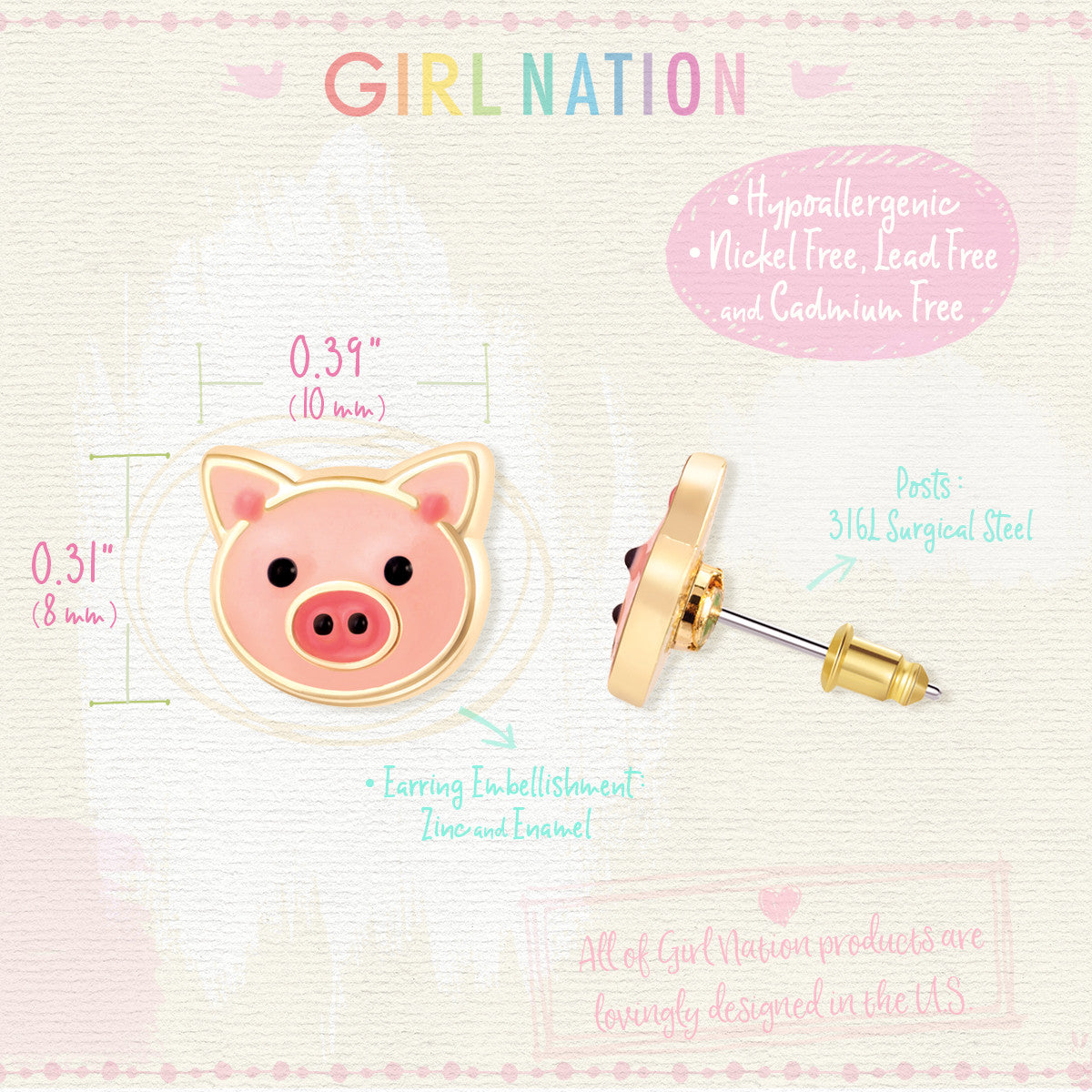 Ideal for Easter baskets, birthday surprises, or as a fun gift for someone who loves animals. These pig earrings are a safe and stylish way for girls to express their playful personality.